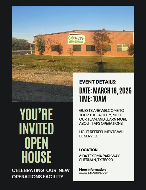 It is TAPS’ policy to ensure that no person shall, on the grounds of race, color, sex, age, national origin, or disability, be excluded from participation in, be denied benefits of, or be otherwise subjected to discrimination under any program or activity as provided by the Title VI of the Civil Rights Act of 1964, the Civil Rights Restoration Act of 1987, and any other related non-discrimination Civil Rights laws and authorities. To request additional information on TAPS’ non-discrimination policies or to file a complaint, contact the General Manager of TAPS (844) 603-6048.